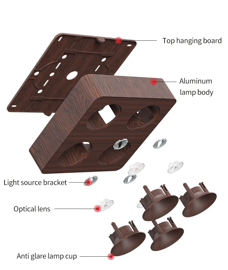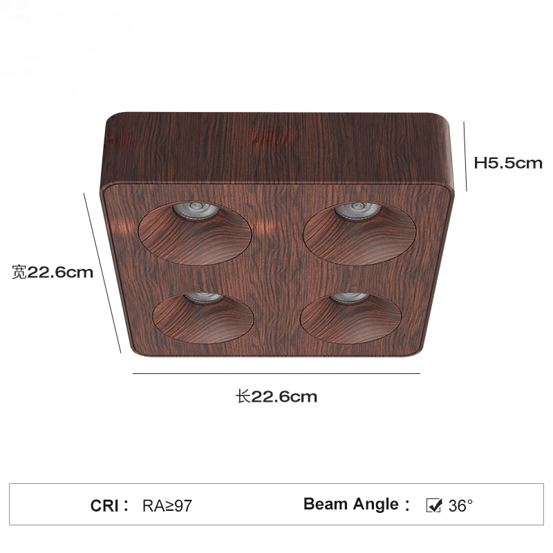 Modern Nordic Walnut Wood 48W Walnut Spotlight Aluminum Square Surface Mounted 4-Head 3000K 3500K 4000K 220V Led Spot Light